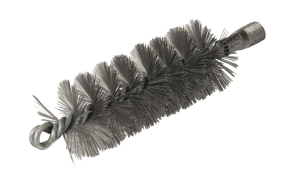 Główny budulec szczotki – stalowy, sprężysty drut – zapewnia jej dużą wytrzymałość. Zakończony gwintem standardowym M12.